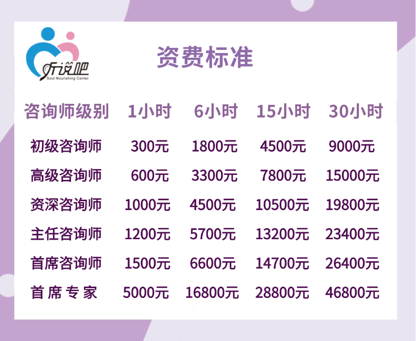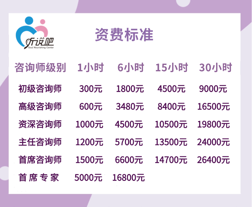 根据我们中心咨询师的不同级别,其咨询费用按以下标准收取: